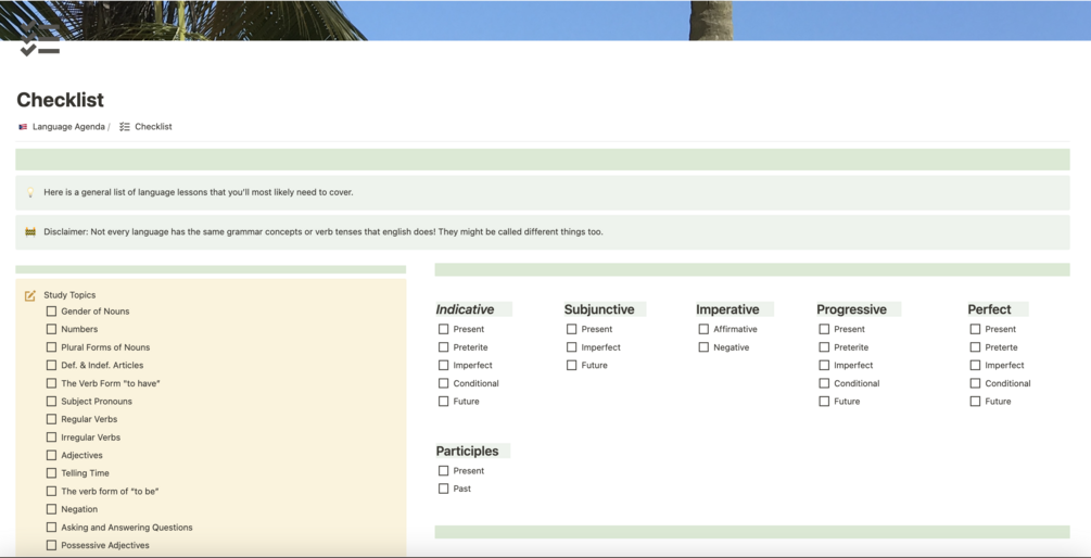 *Disclaimer: Although a lot of my examples in the template are in the spanish language, this template is not spanish learning specific and can be used to learn any language; Feel free to modify the template to fit into your desired language.